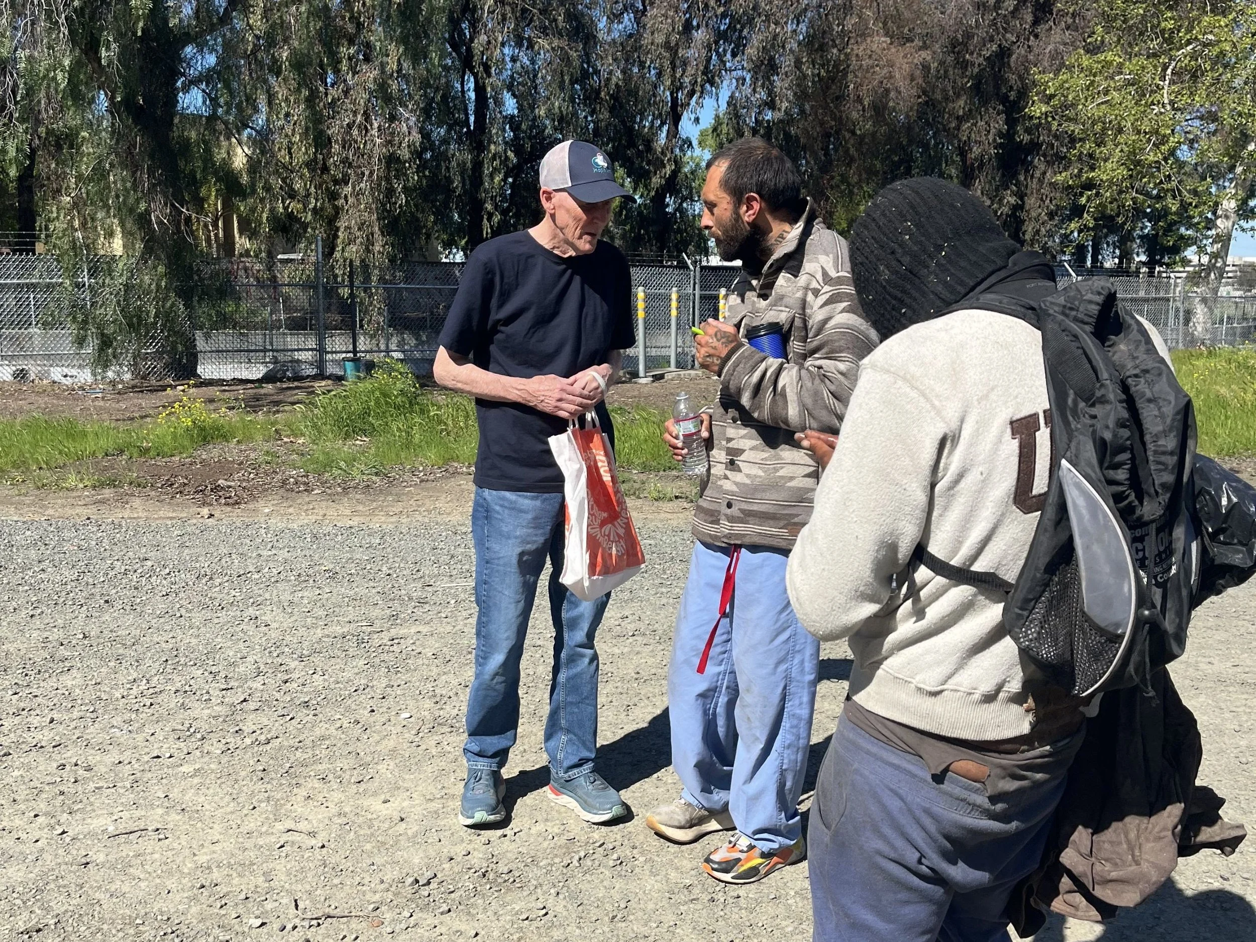 Our Martinez team spotted Jesse walking down the street, and they stopped to offer him hot coffee, a bagged lunch, and a blessing bag. Andrew and Mark had a long conversation with him about the gospel, but they admit that it was hard to tell if he was actively listening. They were careful to go through a quick summary of man's condition and his need for the Savior. Please pray with us that an element of the gospel message will be transformative for Jesse.