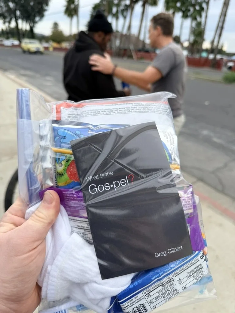 Jesse's hands were shaking during our short conversation, and he seemed to be in pain. He accepted hot coffee, lunch, and a blessing bag. Our team was able to have a good conversation with Jesse focusing on forgiveness and the righteousness and holiness of God. We are hopeful that the illustration of the "earthly courtroom" left a lasting impression on Jesse as he considers his standing before the perfect Judge and seeks repentance and faith. Jesse asked for prayer for his wife, and we prayed a reiteration of the gospel message as well.